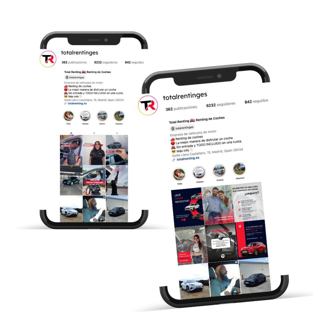 Rediseño completo del perfil de Instagram para una empresa de renting de coches.